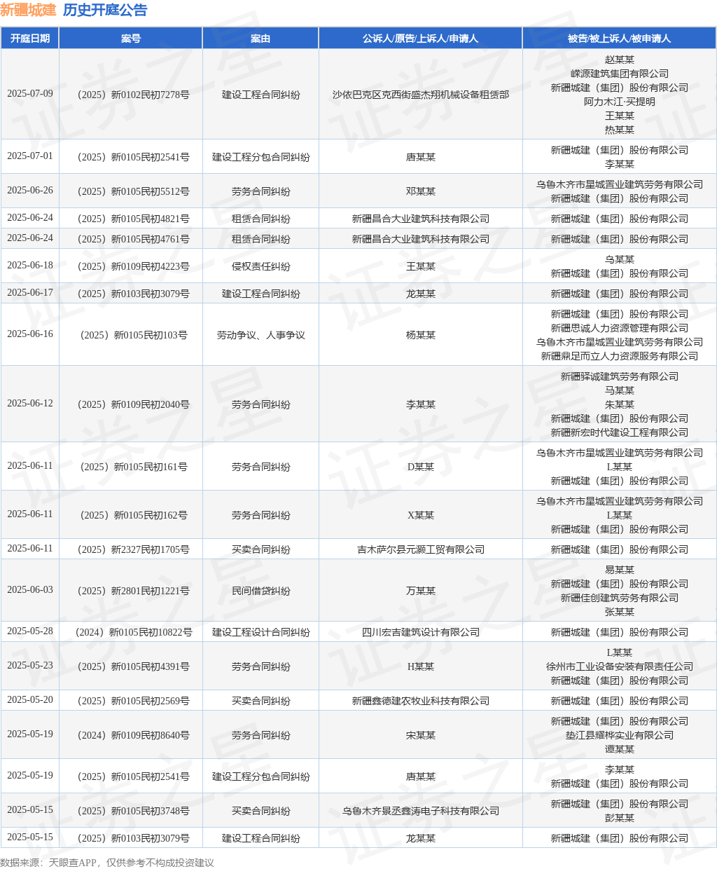 本站消息,根据天眼查APP显示,近日公布了一则新疆城建(集团)股份有限公司作为被告/被上诉人的开庭公告,详细内容如下:
